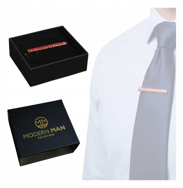 Nyakkendőcsipesz Modern Piros Print Ajándék Neki Doboz (spinka do mankietów)